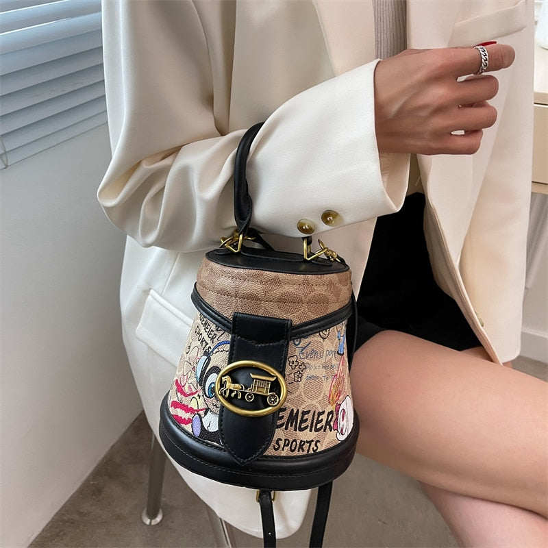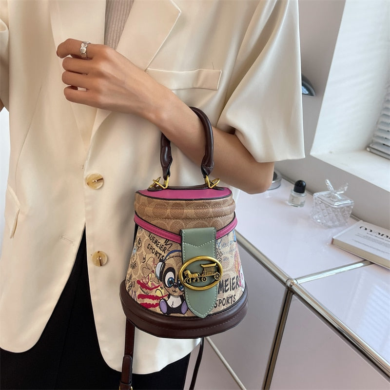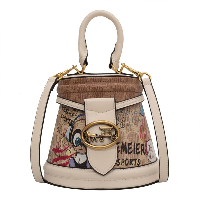 - Our "Horsing Around" Faux Leather Bag Is Stylish, Cute And Display's Your Love For Horse's With A Carriage On The Front. Has Different Print Included To Give It A Pop Of Color.