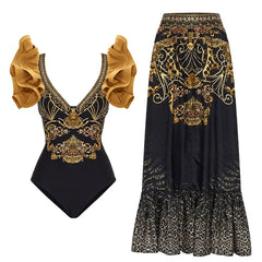 "Gold Mine" Swimsuit With Skirt
