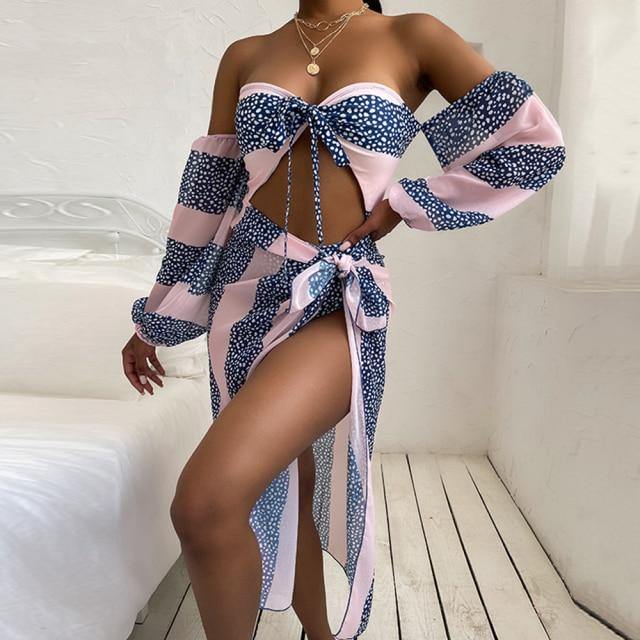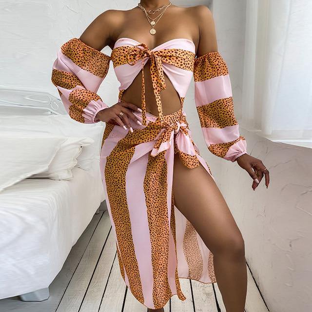 Our "Stripe Out" One Piece Swimsuit Comes With A Cover Up! Super Gorgeous & Stylish! Sure To Be A Hit At The Beach Or Pool Party For The Summer! Multiple Colors Are Available!