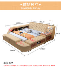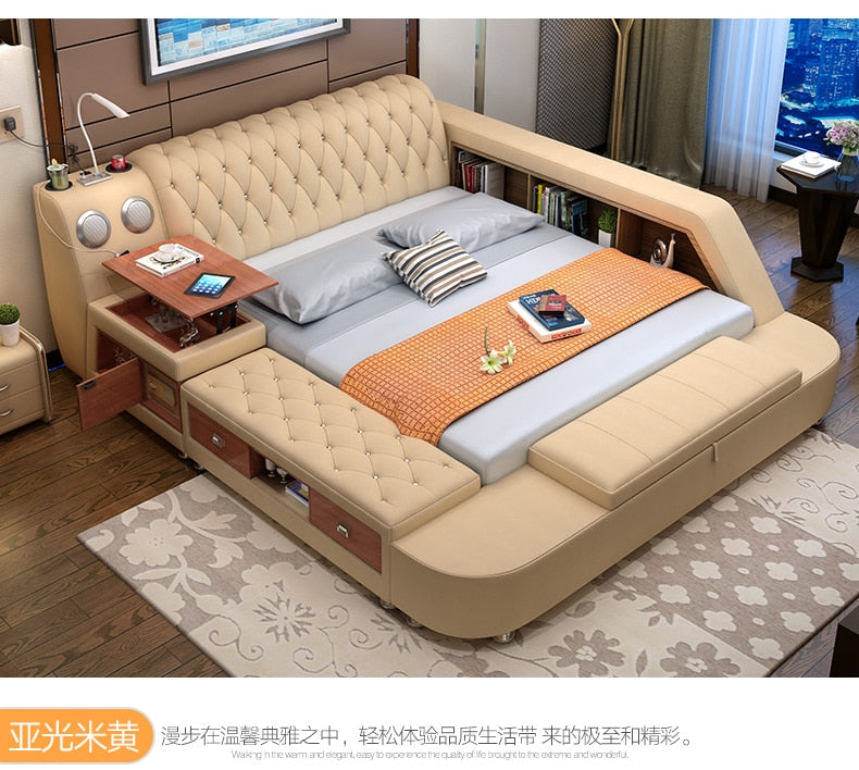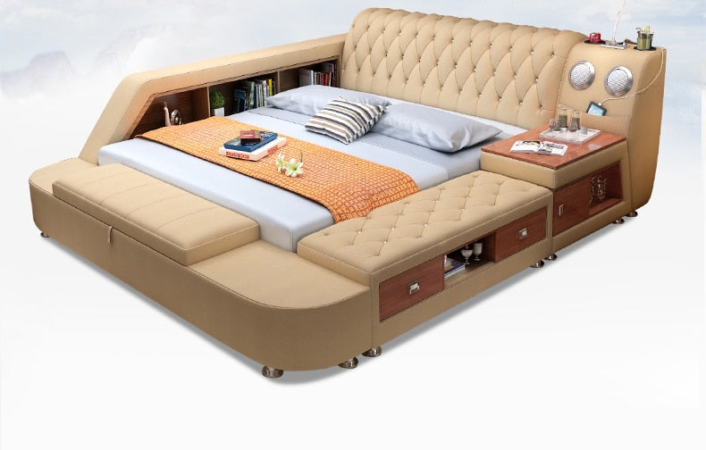 "Carmel Camel" Genuine leather bed with storage speaker LED light